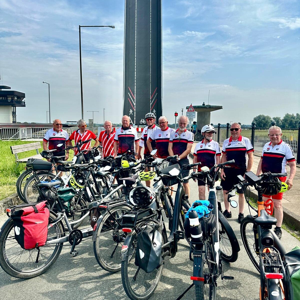 Zunächst mit dem Rad von Etelsen nach Bremen zum Martini-Anlieger, dann per Schiff längs der Weser bisnach Farge, dann wieder per Rad zur Weserinsel Harriersand. Zurück dann über Brake nach Vegesack mitdem Rad und dann per Zug nach Hause.
